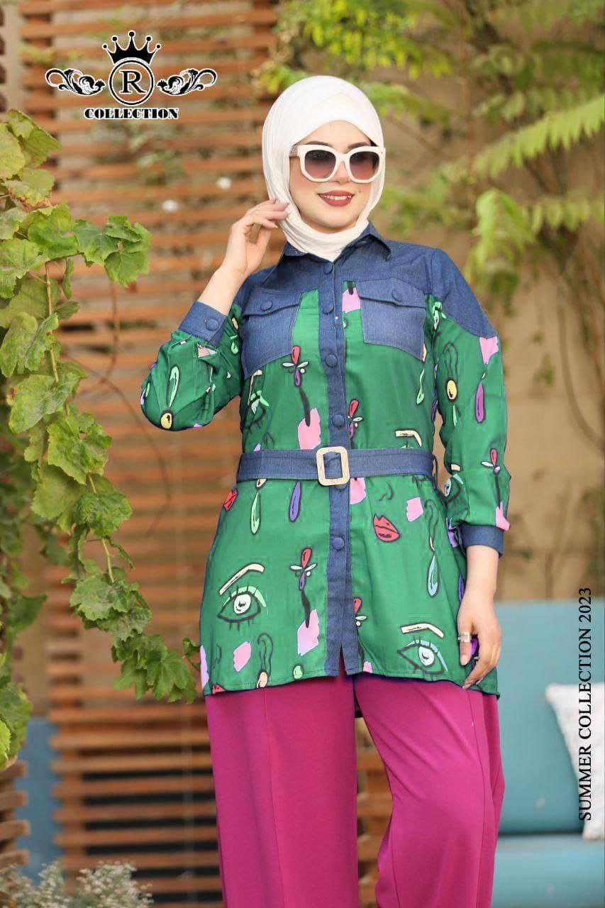 موديل ستايلش بألوان الصيف المبهجة عبارة شيميز نصين جينز * Sph ومعاه حزام جينز تلبسي الموديل بيه أو من غيره.