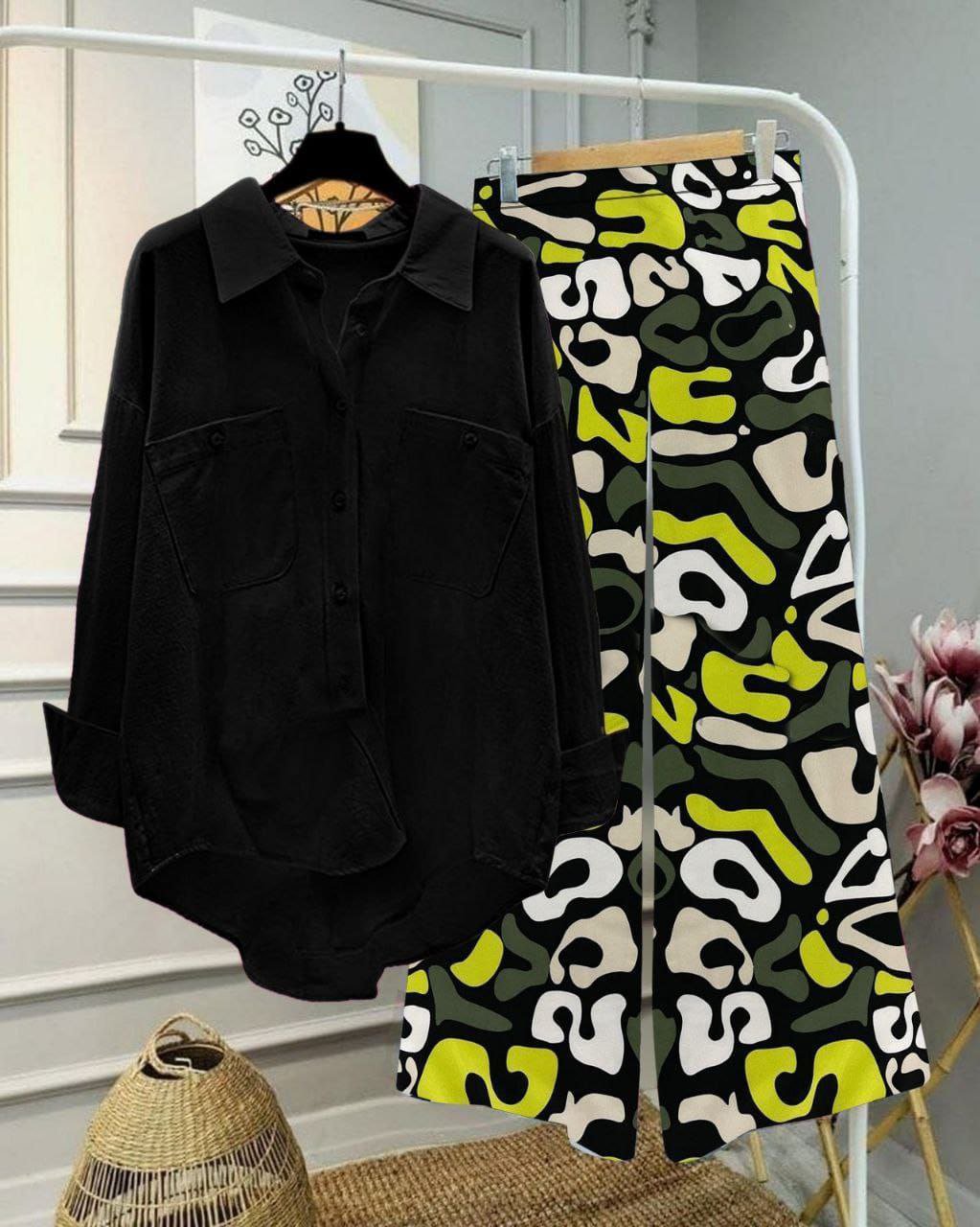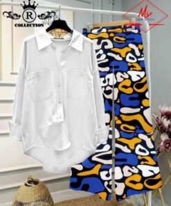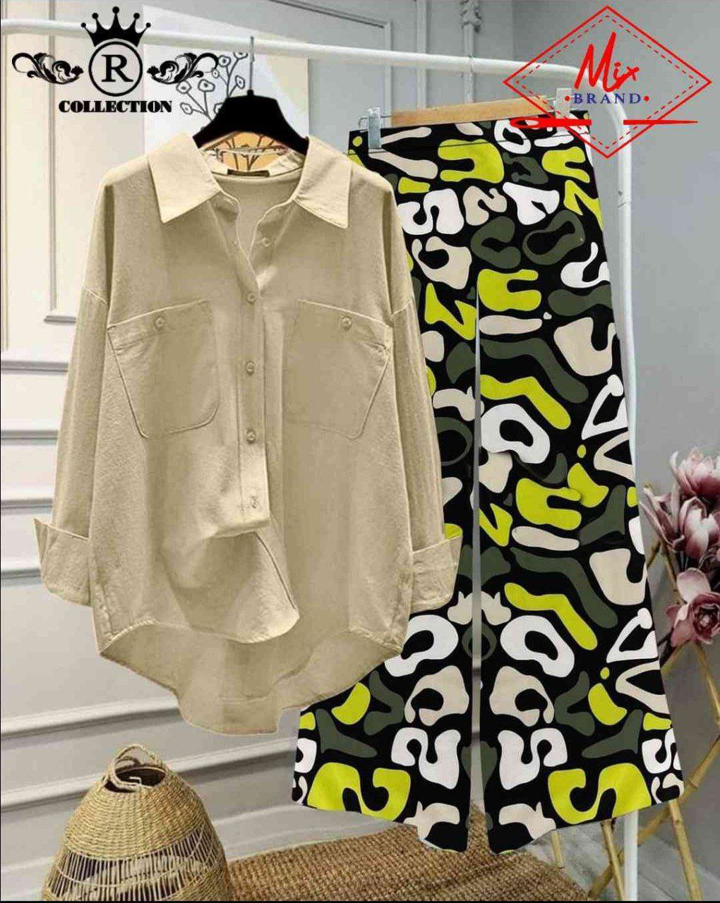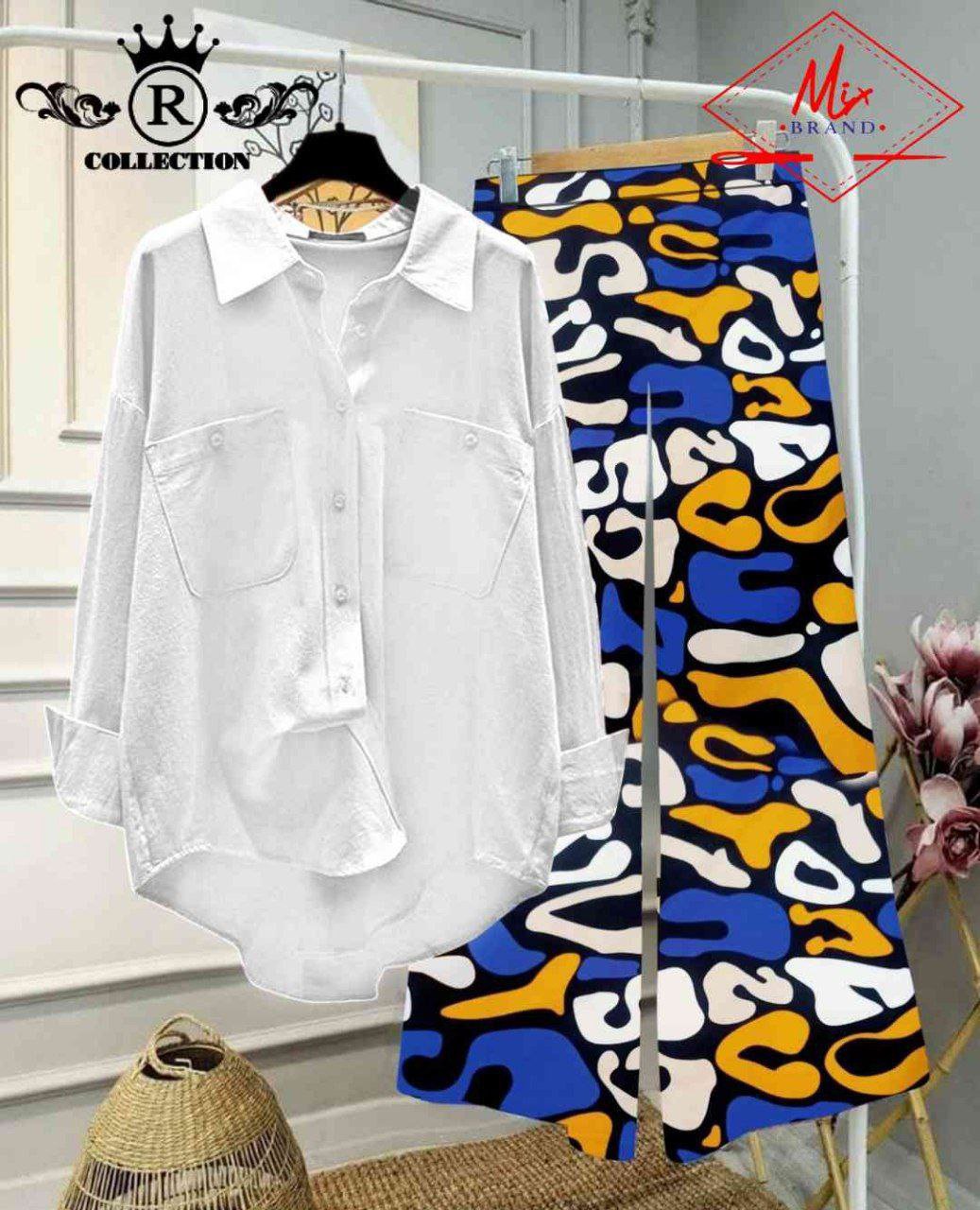 ®️ السوت عبارة عن شيميز ستايل اوڤر سايز وبنطلون وايد ليج.