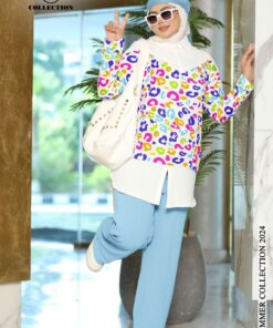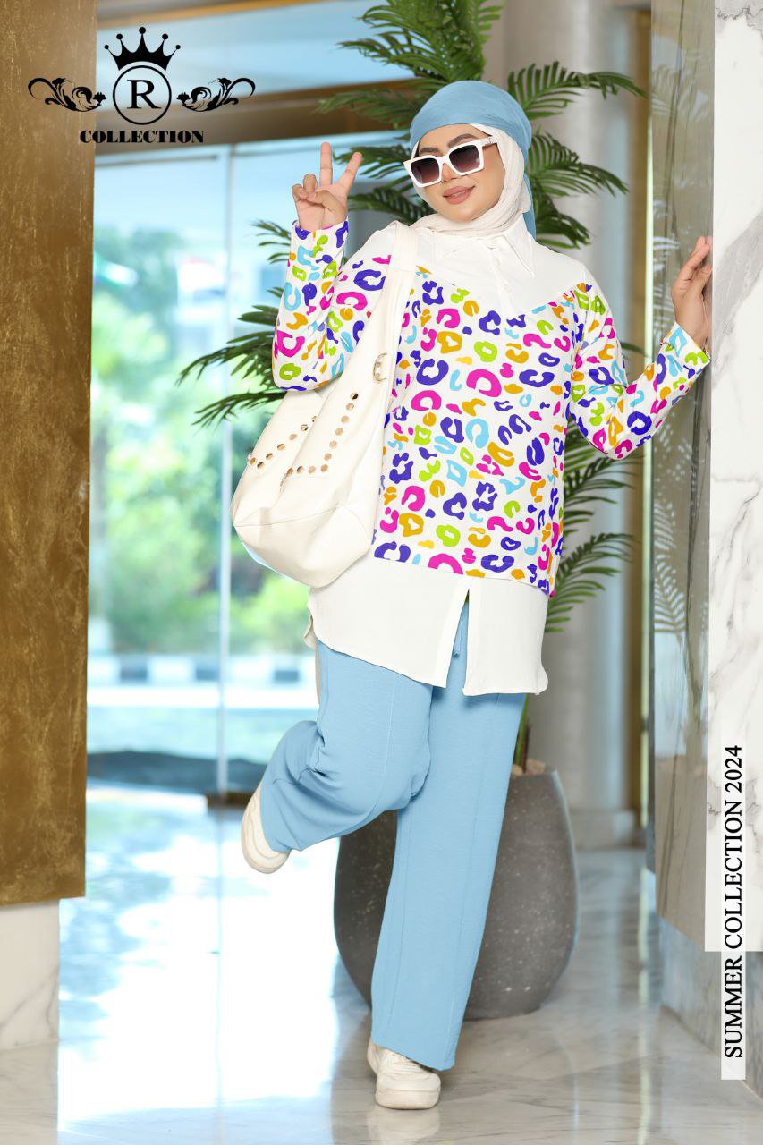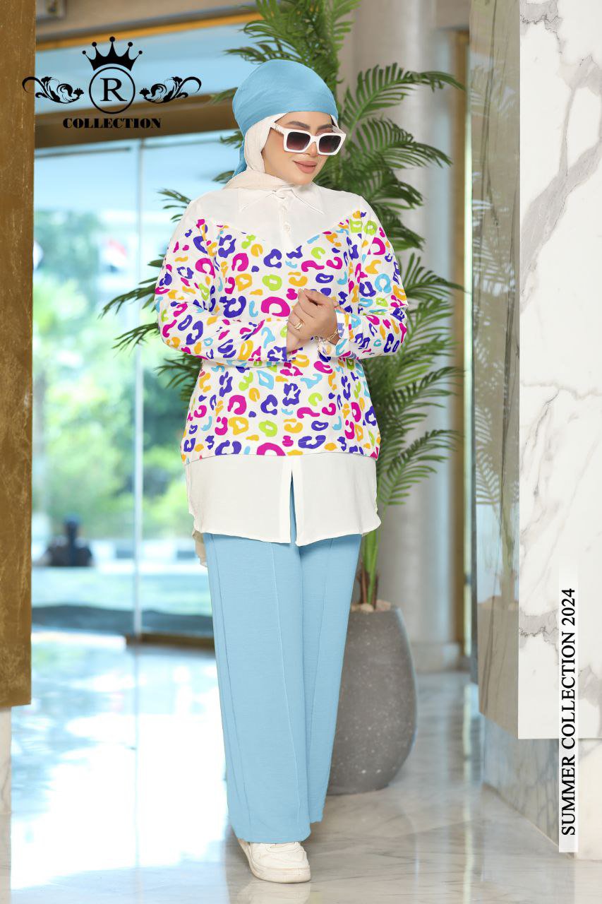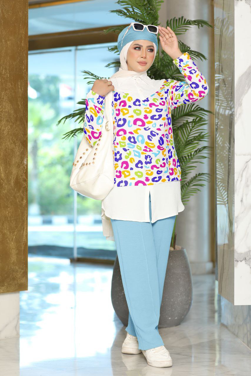 سوت قطعتين بنطلون وشيميز بإستايل جديد ومميز جدا وبألوان الصيف المطرقعة