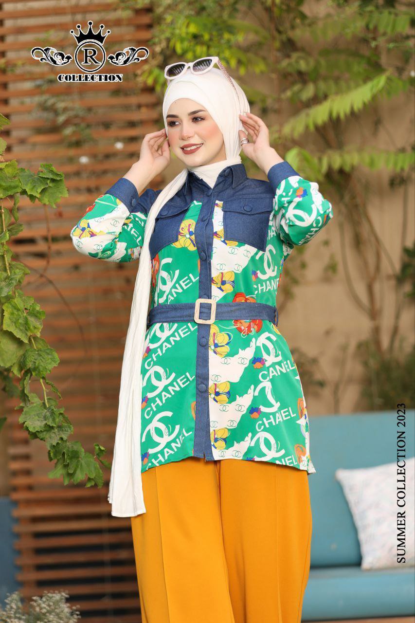 موديل ستايلش بألوان الصيف المبهجة عبارة شيميز نصين جينز * Sph ومعاه حزام جينز تلبسي الموديل بيه أو من غيره.